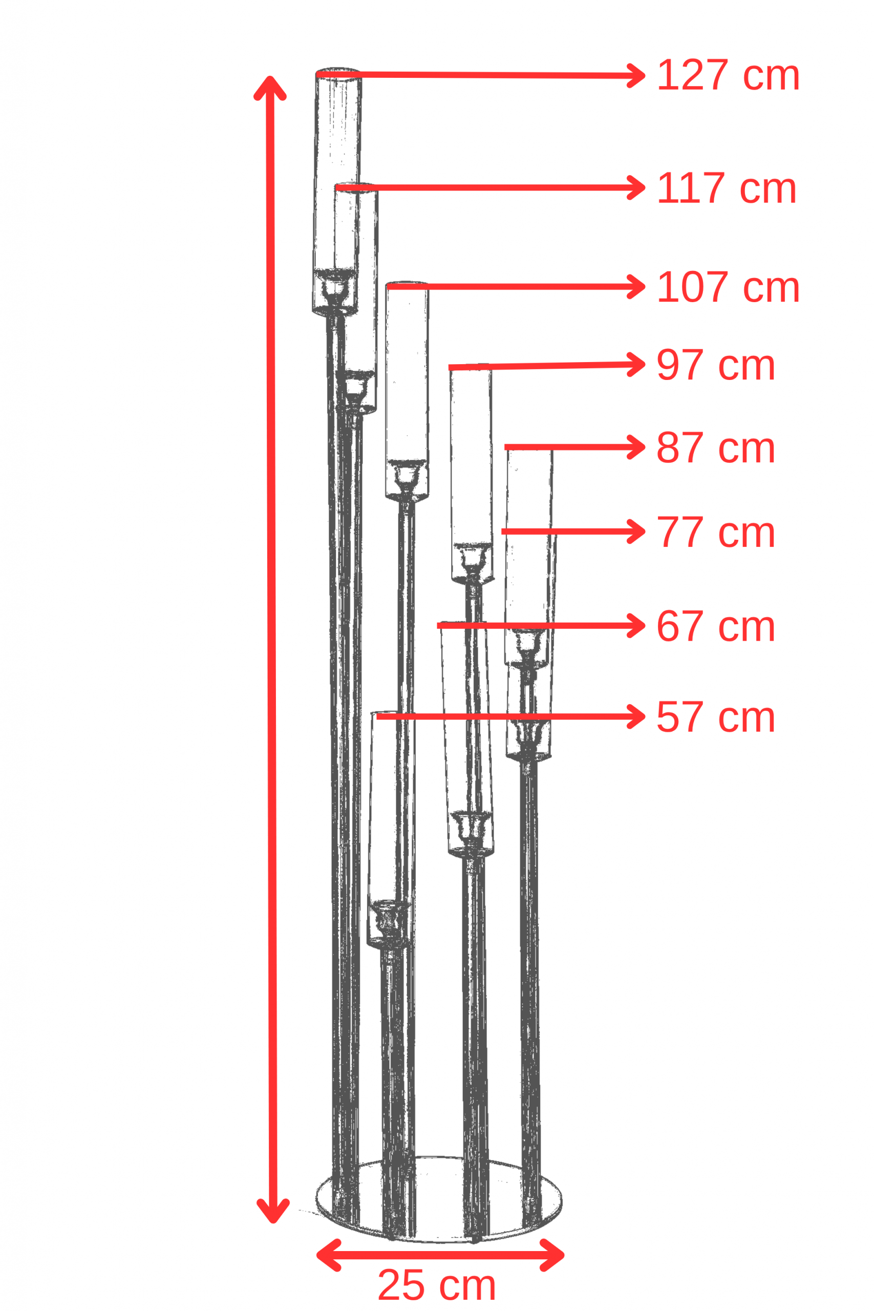 Dieser Kerzenständer schafft eine moderne Atmosphäre und zieht die Aufmerksamkeit auf sich, perfekt für Veranstaltungen. Hergestellt aus sicherem Material. Ein ideales Produkt für verschiedene Anlässe und vielseitig einsetzbar in verschiedenen Räumen.