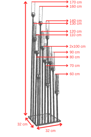 Der elegante Kerzenständer in Gold mit 12 Köpfen und quadratischer Basis aus robustem Metall schafft eine festliche Atmosphäre auf jeder Veranstaltung. Dieser Ständer ist ideal zur Präsentation von Kerzen und verleiht Hochzeiten, Feiern und Events eine stilvolle Note und überzeugt durch Langlebigkeit und hochwertige Verarbeitung, die perfekt für besondere Anlässe geeignet ist.