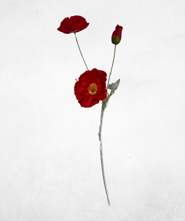 Kunstblume Mohnblume 3-Köpfig Rot (046-2) – langlebige künstliche Dekoblume aus Kunststoff