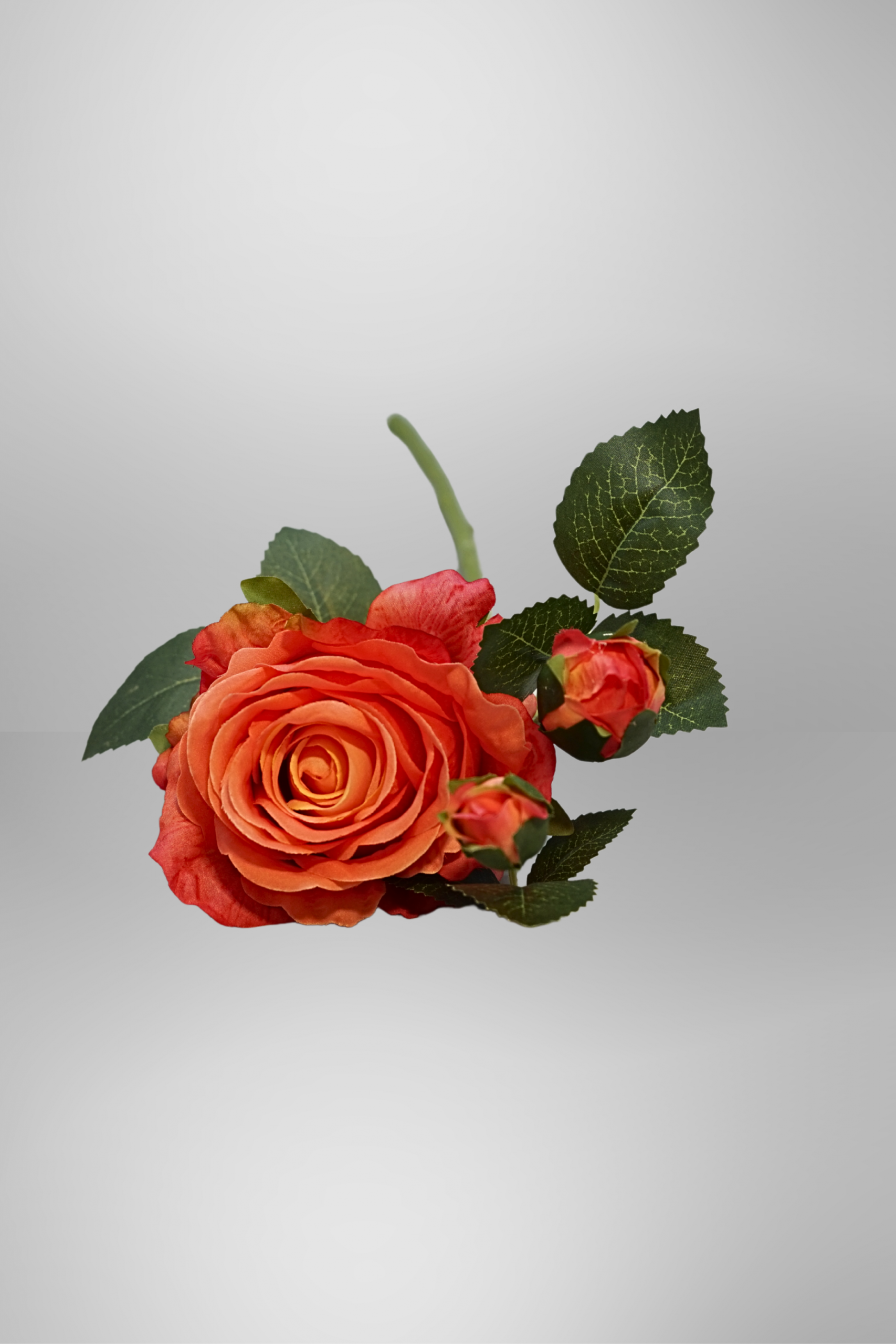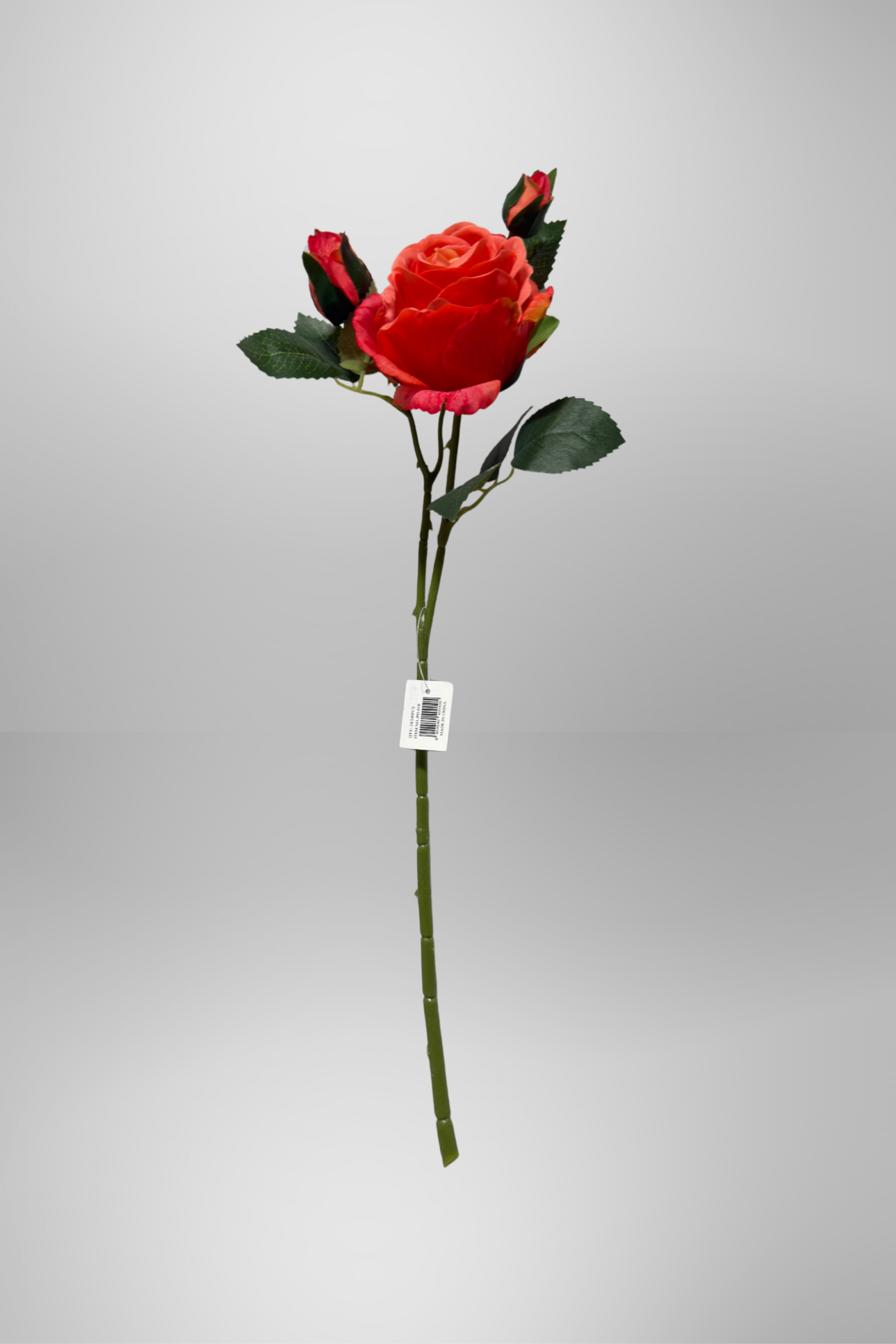 Kunstblume Rose Rot Orangeverlauf (PD-010-2) – langlebige künstliche Dekoblume aus Kunststoff