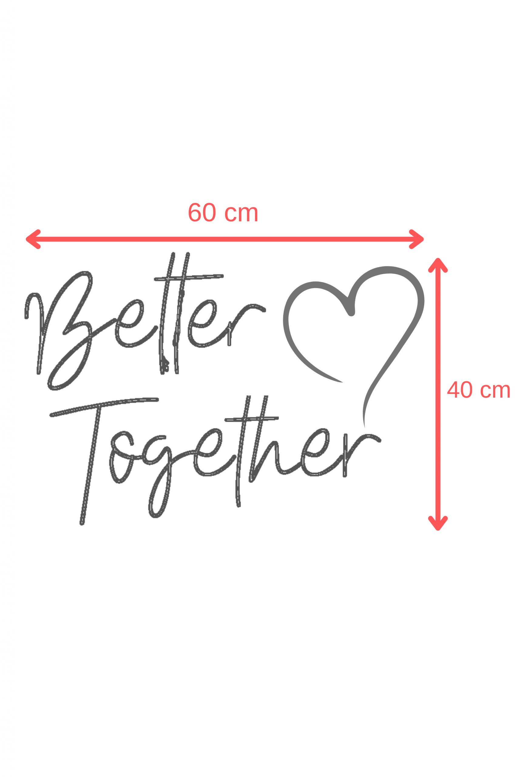 Das LED Neonschild „Better Together“ in der Größe 60cm x 40cm ist die perfekte Dekoration für Hochzeiten, Verlobungsfeiern und romantische Events. Mit seinem warmweißen Licht und der praktischen Fernbedienung lässt sich das Schild mühelos steuern und schafft eine gemütliche, liebevolle Atmosphäre. Gefertigt aus hochwertigem Kunststoff, ist es langlebig und lässt sich einfach an der Wand befestigen, um Ihre besondere Botschaft stilvoll zu präsentieren.